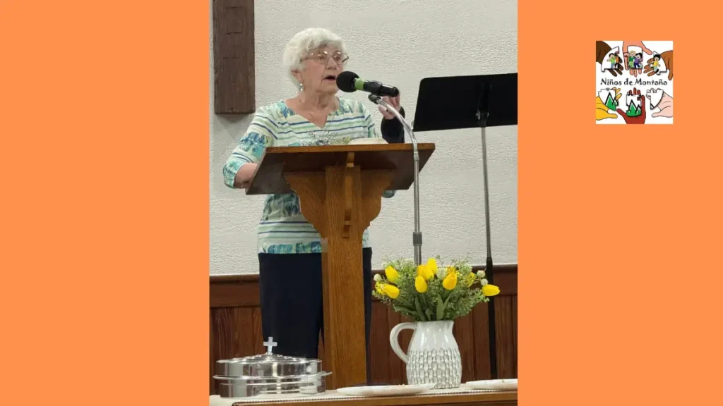 «Esta semana, Elaine Phillips abrió la sección de oración de nuestro servicio e invitó a Carolyn y Jason Stoltzfus al frente para compartir sobre el viaje misionero a Honduras y el equipo.